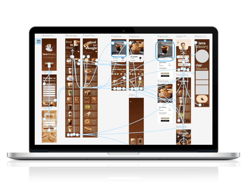 I started by outlining the main features of the app, which include the login, featured, and secondary pages. Ensuring each section emphasized the importance of interface control simplified the flow from point A to point B. This process culminated with the main feature page directing users to log in or register, which then leads them directly to the home page.