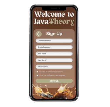 Java Theory is a self driven, hand held app that delivers an experience for all customers from a local coffee shop